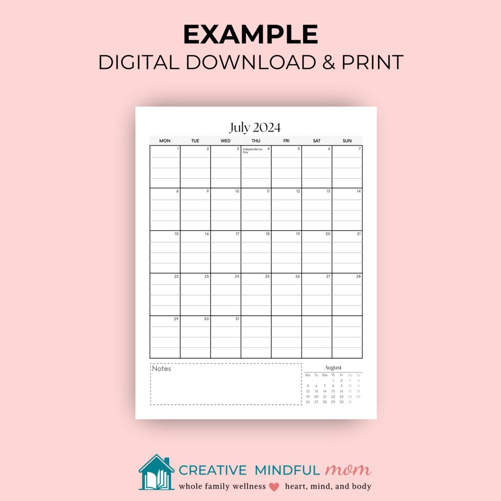 • 4 versions of each month in each size (lined. unlined, Sunday start, Monday start)